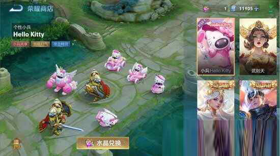 王者荣耀小兵Hello Kitty皮肤怎么获得?王者荣耀小兵Hello Kitty皮肤可以在荣耀商店使用荣耀水晶兑换获得这款皮肤,在4月11日更新之后就正式上线了,是一款联动高品质皮肤,错过了只能等返场了。接下来小编就带来详细的王者荣耀小兵Hello Kitty皮肤获取方法介绍。