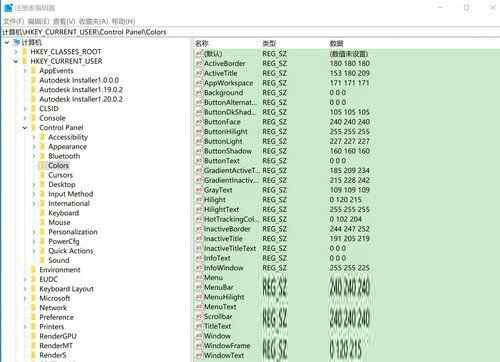 2、再注册表中依次展开:“HKEY_CURRENT_USER \ Control Panel \ Colors”。
