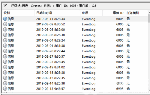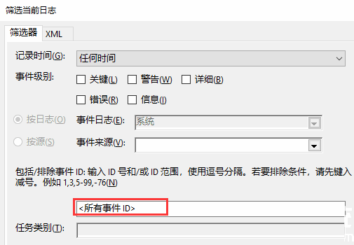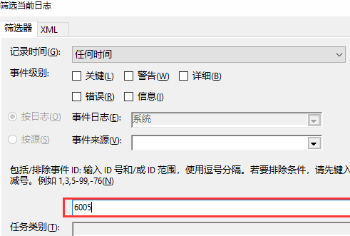 4、出现如图界面,将<所有事件ID>改为6005就可查看机日志