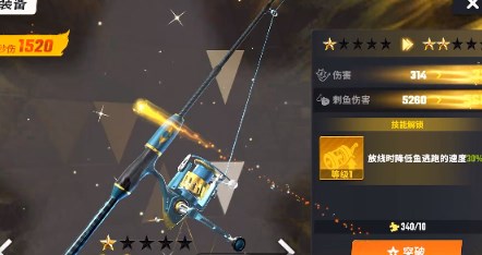 3、玩家也可以消耗碎片突破鱼竿的星级,以此来解锁鱼竿的技能。