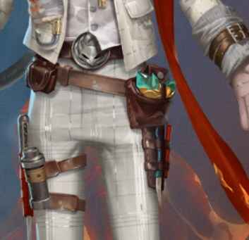 白色皮质猎人帽衬以火红的狐毛状饰品,帽檐前端,侠盗的标记熠熠生辉。肩膀上的狐狸有一半被侵蚀模糊,但仍散发着红色辉芒。张扬的笑容透露着“灵狐”此次行动的信心。“正义的一方,总应该得道多助,不是吗?”