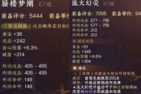 提升对比:+294攻击(算上基础),+15点身法,+2.3%会心伤害,+63命中,+90点破盾,-旧橙戒攻击特效,+250点首领克制的【戒石】效果不确定是否解锁后就有。