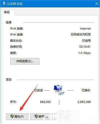 3、在右侧点击 以太网(当前使用的网络),在弹出的框中点击 属性。