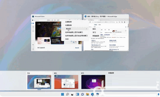 1、使用win11的“虚拟桌面”,我们就可以在不同的桌面,做相同/不同的事情,各个桌面之间操作是互不干扰的。比如说在工作桌面打开浏览器搜索微软,在娱乐桌面同样可以打开浏览器搜索win10;或者一个桌面用于您的工作,另一个桌面用于您的个人应用程序。