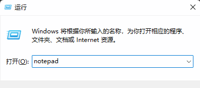 2、运行窗口,输入【notepad】命令,按确定或回车,打开记事本文件;