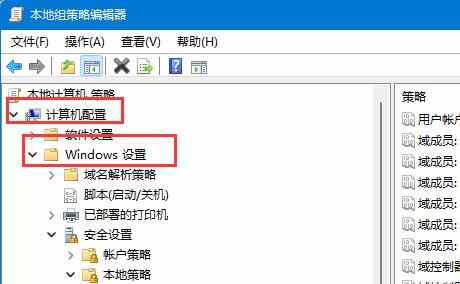 3、打开后进入计算机配置下的“Windows设置”