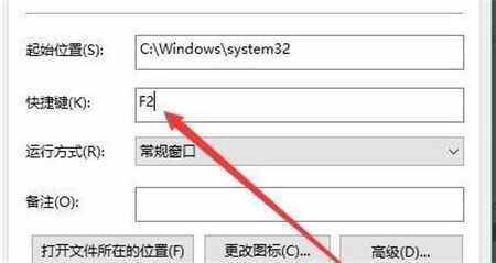 5.在打开的属性窗口中,点击快捷键的文本框,然后接下键盘上的F2键,最后点击确定按钮。这样以后要有事离开电脑外出,只需要按下F2键,就可以马上锁屏了。