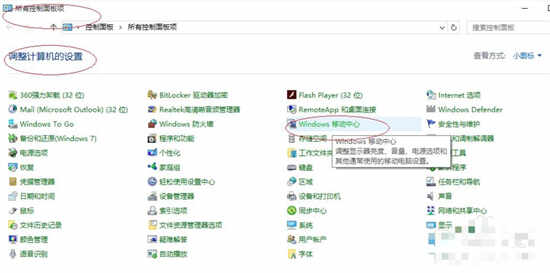3.接着,点击"Windows移动中心"图标