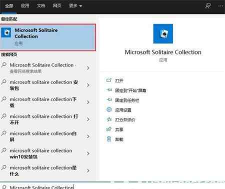3、点击回车得到搜索结果,点击Microsoft Solitaire Collection的应用程序。