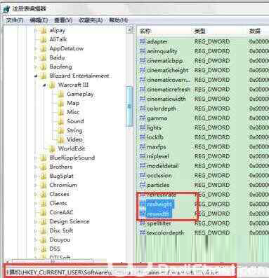 2、在注册表编辑器窗口中,定位到【HKEY_CURRENT_USER/SOFTWARE/BLIZZARD ENTERTAIMENT/WARCRAFTIII/Video】。