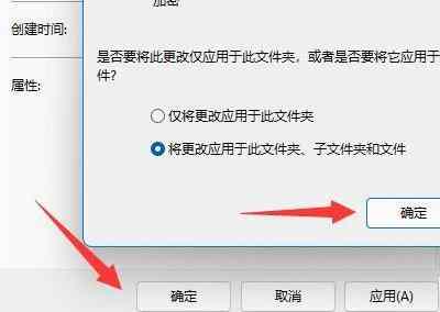 4、最后返回到文件夹的属性,在弹出的窗口中点击“确定”即可