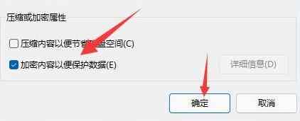 3、勾选菜单中的“加密内容以便保护数据”并点击确定