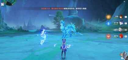 1、携带1个火系和冰系角色,来到隐山猊兽BOSS处。