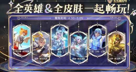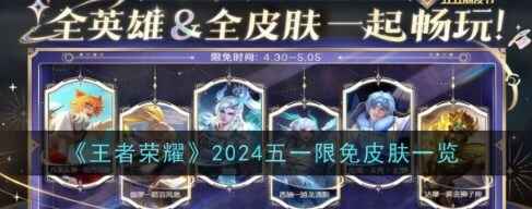 2024王者荣耀五一限免皮肤有哪些?王者荣耀手游中为玩家们带来了超多不同职业的英雄角色,这些英雄角色都是有不同的皮肤可以进行切换,而且在一些节日中玩家们还可以免费获取新皮肤,在今年的五五朋友节中将会为玩家们带来一大批的皮肤活动,其中就有很多限免皮肤,本次就让小编来为大家介绍一下游戏中有哪些限免皮肤,有兴趣的小伙伴们快来看看吧。