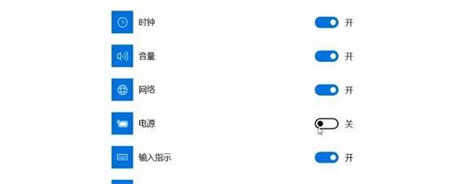 3、巡视系统图标列表,找到“电源”选项,并打开右侧的开关即可恢复电量图标了。