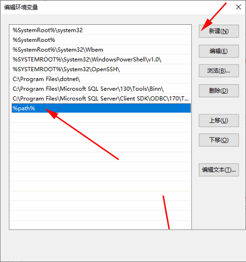 在弹出的“编辑环境变量”对话框中,点击“新建”按钮,把%path%,添加进来,然后点击“确定”按钮。