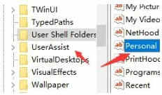 回到注册表编辑器,用同样的方法打开“user shell folders”下的“personal”文件。