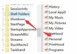 进入explorer文件夹后,在其中找到“shell folders”,双击打开“personal”文件。