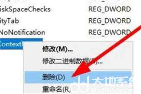 5、右键点击该键值,在弹出菜单中选择“删除”菜单项。