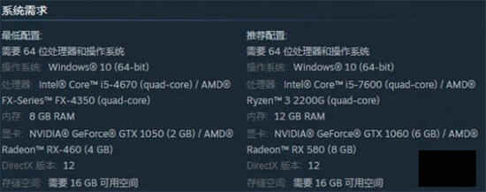 游戏的配置要求并不高,无论是英特尔i5还是英伟达1060,都是比较低的配置,对现在的玩家来说都是差一些的。