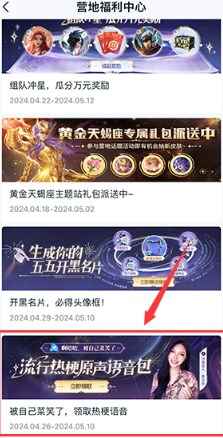 3、然后滑动界面找到“被自己菜笑了,领取热梗语音”活动,点击进入。
