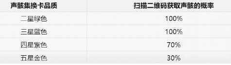 除召唤获取声骸外,漂泊者还可通过声骸集换卡获取额外的声骸。漂泊者通过扫描被分享的声骸集换卡的二维码,或者点击他人分享的声骸集换卡链接,即有概率获取同样的声骸,概率如下: