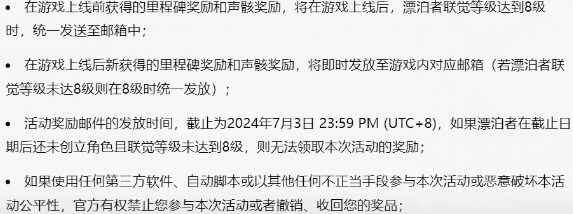 请各位漂泊者使用库洛通行证参与本次活动,并在《鸣潮》正式上线后使用同一账号创建角色,以保证活动奖励的正常领取。
