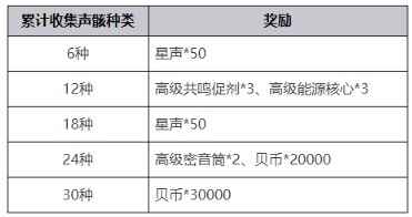 漂泊者收集到的声骸图鉴种类达到一定数量后,即可获取星声、经验药剂、贝币奖励;