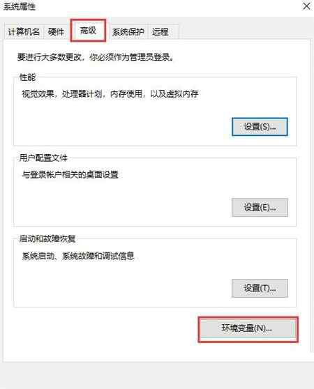 2、在系统属性界面内选择高级,然后点击环境变量。