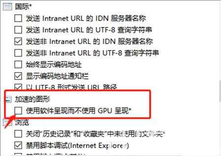 5、接着我们找到使用软件呈现而不使用gpu呈现,将其勾选上。