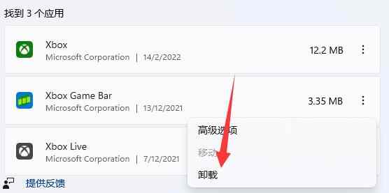 3、然后找到“xbox game bar”,点击右边的“三个点”将他“卸载”掉