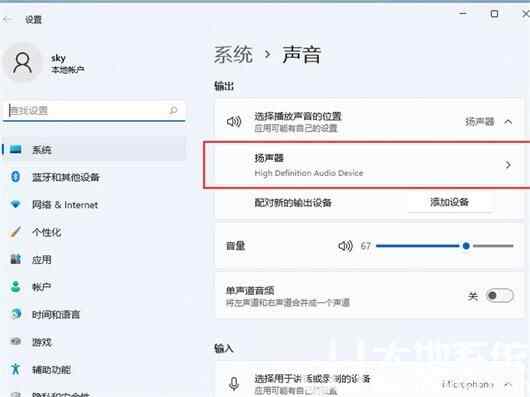 3、当前路径为:系统 > 声音 > 属性,尝试调一下输出设置下的音量;