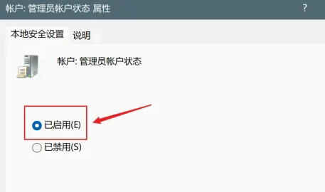 4、在管理员账户状态中勾选“以启用”,再点击下方“确定”保存即可获取system的权限