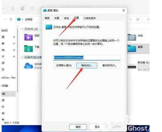 4、如果想要移动桌面文件夹的位置,就点击移动按钮即可。