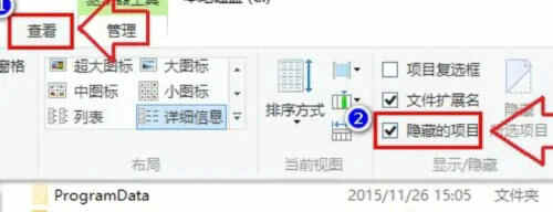 2、点击“查看”菜单,勾选“隐藏的项目”,同时按快捷键 Win+R,在打开的运行窗口中输入localappdata回车。