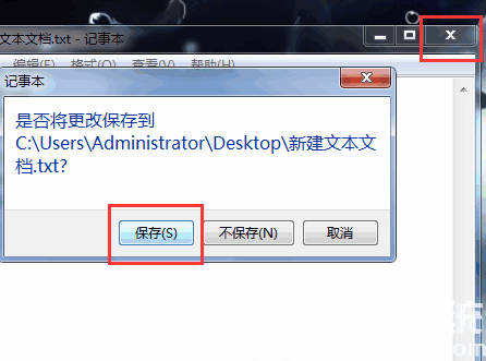 三、点击记事本窗口右上角“关闭按钮”,弹出是否保存窗口中点击“保存”。