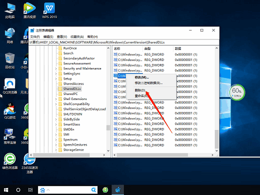 有的win10用户在使用电脑的时候遇到了dll流氓文件,怎么删都删不干净,那么如何强制删除dll流氓文件呢?其实大家可以通过注册表编辑器来删除,具体操作为:调出运行窗口,通过regedit打开注册表编辑器,然后定位到sharedlls文件夹,打开之后找到想要删除的某个dll流氓文件,右键删除就可以了。