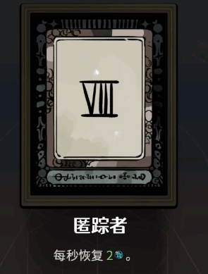 离开每个地点后,恢复2生命值;生命值不超过30%时此效果翻倍。
