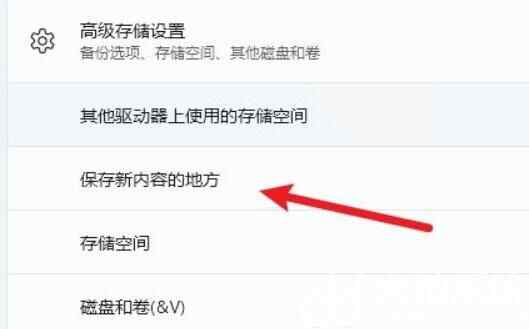 4、随后展开高级存储设置,点击“保存新内容的地方”