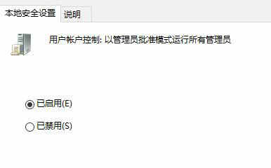 2、双击打开该策略,勾选“以启用”,再点击下方“确定”保存即可获得管理员权限。
