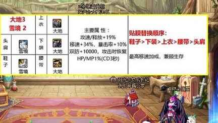【1】“大地”5件贴膜。“雾神尼”融合史诗装备更换顺序,分别是鞋子、腰带、下装、头肩和上衣。之所以最后选择“上衣”,是因为攻速鞋触发加成,我们需要格外的注意。