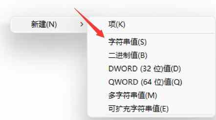 3、然后右键右边空白处,选择新建一个“字符串值”