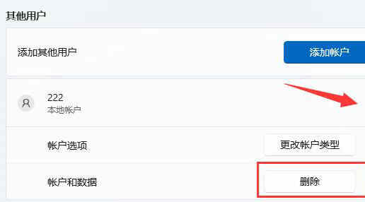 3、展开其他用户下的本地账户,点击“删除”