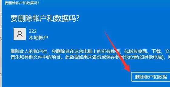 4、在弹出窗口中点击“删除账户和数据”就可以删除本地账户了