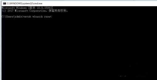 5、打开命令提示符后,在其中输入“netsh winsock reset”,回车确定