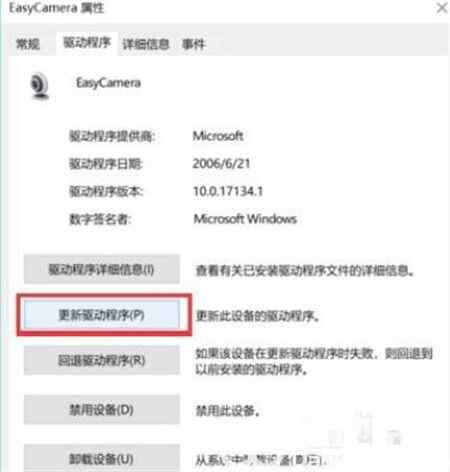 4、切换到驱动程序选项卡,然后点击更新驱动程序;