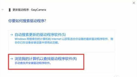 5、更新驱动程序的两种方法,大家可以根据自己的情况进行选择,一般情况下是,下载好对应的显卡驱动程序,然后再手动进行安装,所以这里点击选择浏览我的计算机以查找驱动程序软件;