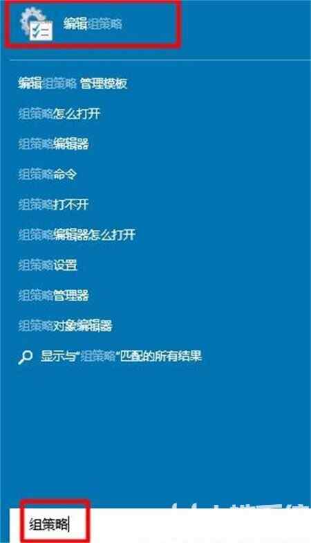 3、在搜索框中输入“组策略”,可以看到组策略搜索到了,我们直接点击;