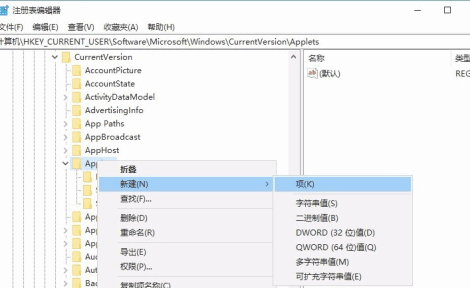 3.点击右键,选择新建,新建里面选择项,命名“StickyNotes”,点击保存,这样子就好啦。