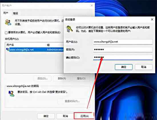 6、取消后点击应用,然后输入当前的账号的PIN码,再点击确定,下次开机系统就会自动登陆了;